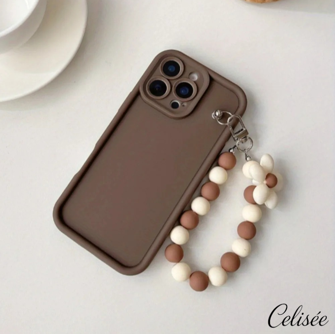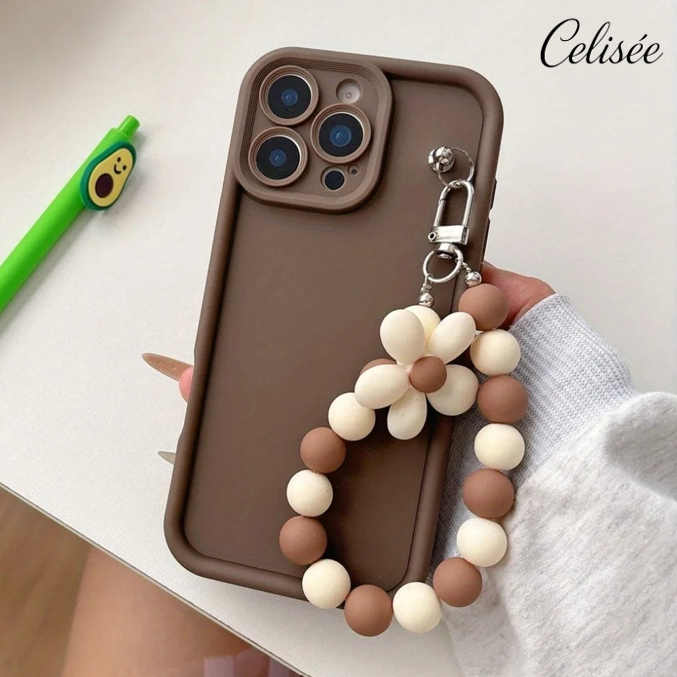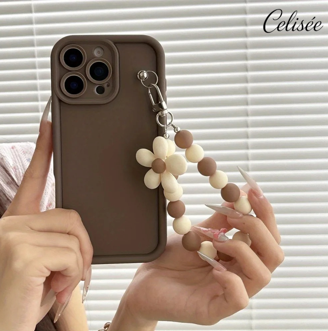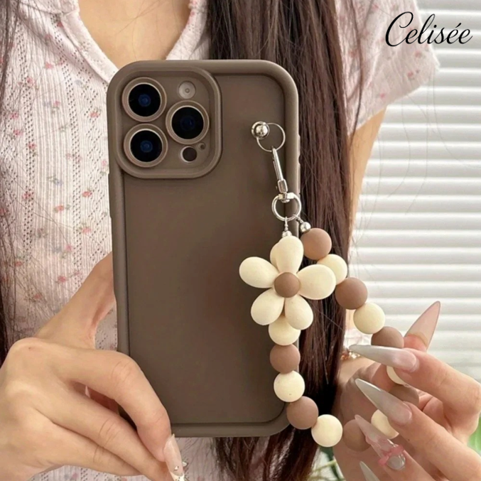 Die Celisée Flora Loop iPhone Hülle verbindet ein schlichtes, mattes Design mit einer dekorativen Blumen-Perlenkette in harmonischen Naturtönen. Die einfarbige Rückseite wirkt ruhig und elegant, während die florale Handschlaufe einen stilvollen Akzent setzt und zugleich zusätzlichen Halt im Alltag bietet.
